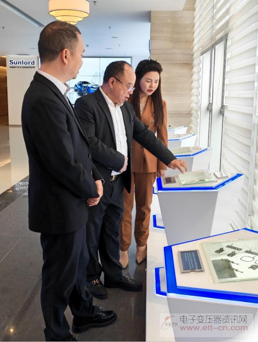 为进一步增进双方了解,周秘书长还邀请程总与刘董参观顺络电子企业展厅。在参观过程中,周秘书长结合实物产品与技术展板,详细介绍了顺络电子在高端电感器、变压器等领域的研发成果、生产体系与市场应用情况。程总与刘董对顺络电子的技术积累与智能制造水平表示高度赞赏,并就产品创新、产品应用等问题与周秘书长展开了现场交流。