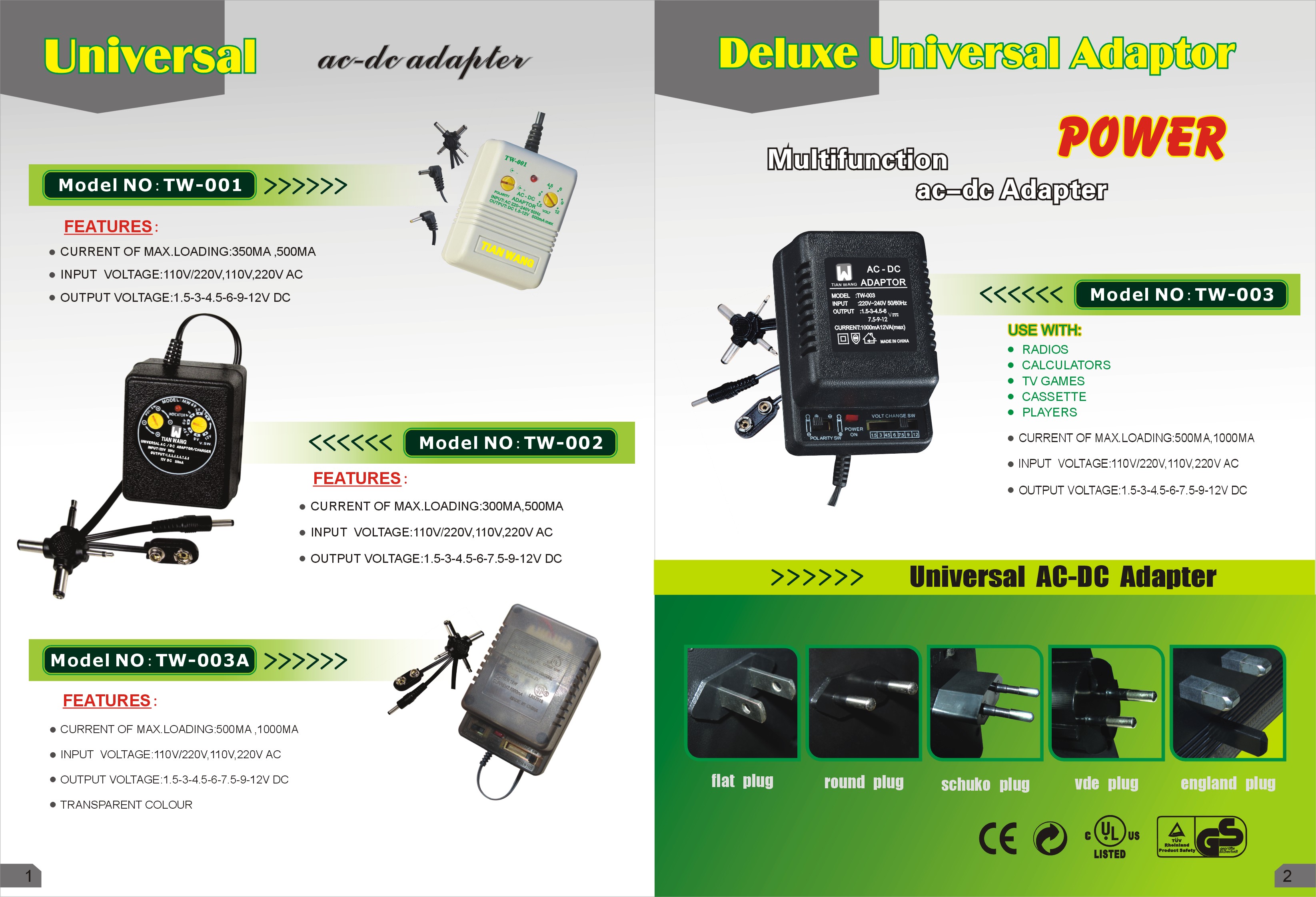 本公司创立于1988年,是一家专业从事生产各类电源变压器AC/DC、AC/AC的厂家。产品以出口为主,销售于东南亚、欧洲、南美洲、中东等国家。产品主要有多功能开关转换可调整流器、旋钮型多档变换整流器、手机充电器,变压器,多功能可调整流变压器,电源转换器,开关电源,电源适配器,电池充电器,卫星天线放大器电源,游戏机、CD机及功放机、收录机等专用电源变压器。本公司于1996年已获得欧洲CE安全认证书,是各商家理想的电源大王。江门市天旺电器有限公司广东省江门市新会区今古洲经济开发区今洲路41号TEL:0750-6391766 FAX:0750-6391330MOBILE:13902582462潘先生 13822350075文小姐 15992199862 潘小姐QQ:275175521 1564896819 2208220692e-mail: p1968628@126.com yyjyyd@qq.comHttp:www.chinatwdq.com