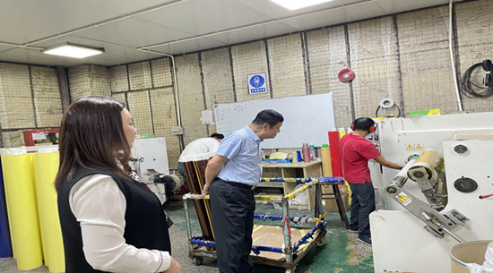 2021年11月初,疫情缓解后,秘书处胡秘书长和文秘吴子燕等人一同拜访我分会会员单位深圳市鑫华辉电子材料有限公司。鑫华辉董事长刘晴予汇报了企业今年的生产经营状况和发展计划。并陪同秘书长等人参观其生产现场,鑫华辉通过这几年的努力和较大的经济投入迈出了较大的步伐,稳步前行,秘书长对鑫华辉的发展给予了肯定和期望。