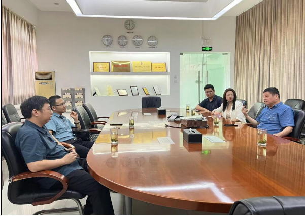 6月15日深圳市鑫华辉电子材料有限公司刘莉华董事长、莫昊总经理与江西艾特磁材有限公司黄浩副总经理一行拜访秘书处。与分会胡先辉秘书长就当前电子变压行业的发展状况、市场潜力以及遇到的问题进行了深入细致的交流和研讨。