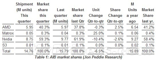 厂商方面,NVIDIA季度出货875万块,同比、环比分别减少5.6%、10.4%,目前市场份额为59.3%,一个季度丢掉了2.6个百分点,但比去年同期还是高出0.9个百分点。