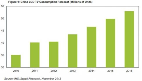 尽管前景不错,但2012年增长势头急转直下与前几年形成鲜明对比。IHS iSuppli公司认为,如果不是全球经济不确定性带来负面影响,中国液晶电视市场本来会强劲增长。