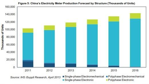 自然,随着替换速度加快,普通电表的产量将快速下滑,到2016年接近消亡。
