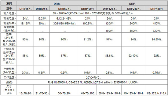输出功率:DRB系列15/30/50/100W;DRF系列120/240/480W