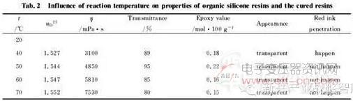 2、反应温度对有机硅封装材料的合成及性能的影响