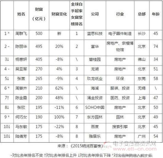 胡润研究院10月19日发布胡润百富榜子榜之一《2015胡润女富豪榜》,这是胡润研究院连续第十次发布“胡润女富豪榜”前50名,也是第六次发布“胡润全球白手起家女富豪榜”。上榜富豪财富计算的截止日期为2015年8月14日。