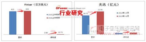 光器件子行业在光通信产业链上竞争最为激烈,全球全十的供应商占到全球市场份额的63.22%。除了排名第一的Finisar超过全球市场份额的10%,其他都低于10%。国内供应商的市场份额都有所上升,中国已经有两家企业进入全球前十。光迅更是首次超过Oclaro进入全球前五,市场份额达到5.36%。