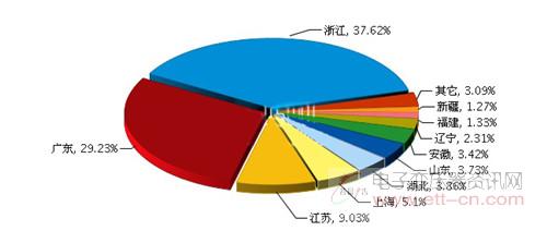 2016年1月~9月全国白炽灯泡行业累计出口额地区占比情况