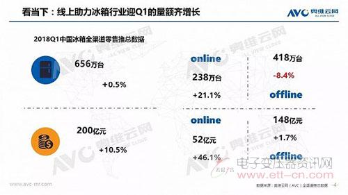 【导读】: 受2017年1月同期较高基数影响,冰箱市场2018年1月市场惨淡,2月市场虽略有回暖仍难挽1月颓势。冰箱市场Q1表现超出预期主要来自3月份促销带来的三四级市场潜在需求的释放。奥维云网(AVC)全渠...