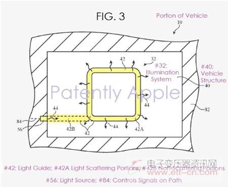 苹果表示,诸如车辆之类的系统通常具有照明系统。车辆中的照明系统包括用于提供美学照明和信息视觉输出的内部照明以及诸如头灯和尾灯的外部照明。苹果在其发明概述中提到,他们注意到照明系统可以包括一个或多个光源和一个或多个光导。