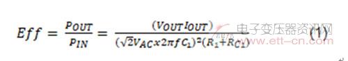 为提高该系统的效率,您需要优化三个主要组件——浪涌电阻、稳压二极管和LDO的压降。公式1所示为如何计算图2所示的基本电容压降解决方案的效率。