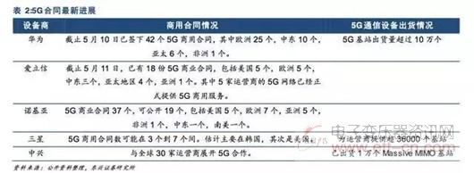 设备商竞争格局出现新变化,三星成为5G设备商新进入者。从5G最新订单情况来看,华为订单数量最多,5G基站出货量超过10万。三星在5G时代成为设备商新进入者,目前主要供货与韩国电信运营商,发货量3.6万。