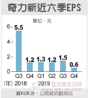 电感大厂奇力新昨(26)日公告,去年第4季获利季减约六成,为近六年来单季获利低点。去年总获利11.47亿元(新台币,下同)。