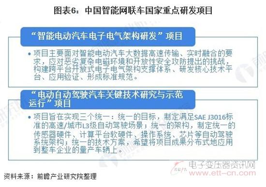 为与国际先进智能网联汽车技术水平保持同步发展,开发具有自主知识产权的智能网联汽车产品和技术,我国也相继批准国家重点研发项目,如智能电动汽车电子电气架构研发、电动自动驾驶汽车关键技术研究与示范运行等项目,目前均已经进入中期检查阶段。
