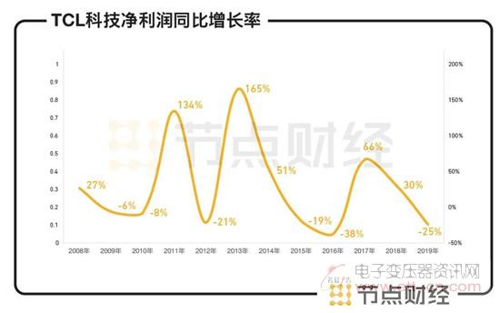 摆脱危机,站稳脚跟之后,TCL此后的业绩并不稳定,净利润增长忽上忽下。