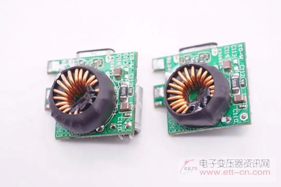 磁环电感,在以前比较老式的充电器中,应用相当广泛,但在现在小型化需求,电路开关频率越来越高,磁环电感越来越失去优势,交流损耗变差,效率低,发烫,如果要让效率进一步提高,要用更大直径的磁环,但又违背了充电器要往小型化发展的市场需求方向。对现在超高功率密度的多口充电器来说一是空间占用多,另外就是发热高,磁环电感不是很适用。