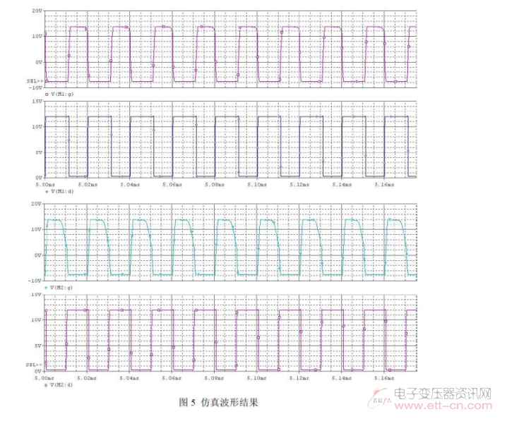 本文作者创新点:针对目前对MOSFET 应用日益广泛,在一些特殊场合常常会用到互补MOSFET 而各类文献中较少涉及互补MOSFET 的驱动问题,提出了对互补MOSFET 的驱动电路设计,并通过仿真对结果进行了验证。
