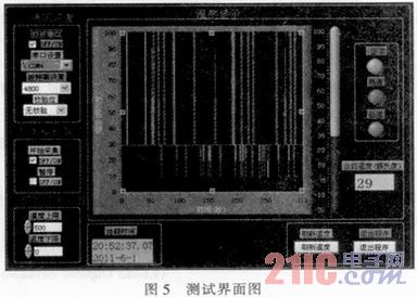 该测试系统用于某型蓄电池温度的测试。在进行测试时,首先运行该监测应用软件,初始化后,通过完成检测设置和通信配置等相关设置后,然后通过点击主程序界面的相应模块检测按钮进行相应的测试,其中上位机发送控制命令字,然后接收下位机发回的数据;并将结果进行显示,程序面板的部分界面如图5所示。通过实际应用发现,该测试系统测试结果准确、稳定可靠。