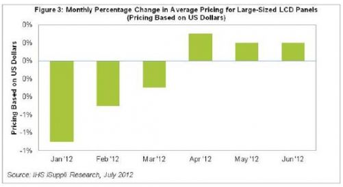 帮助推动6月价格上涨的突出因素包括厂商通过压低产能利用率来严格控制产量,以及生产结构发生变化,导致部分面板型号出现供应紧张。虽然终端需求仍因美国经济黯淡、欧元区债务危机和新兴市场增长放缓的影响而保持疲软,但随着新的超级本的推出以及消费者为收看伦敦奥运会而购买新电视,预计今年下半年需求将改善。
