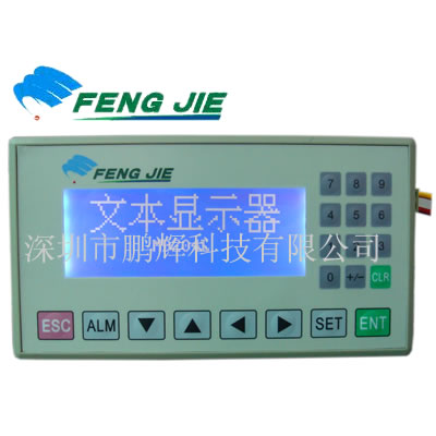 丰捷文本显示器MD204L是我公司推出的新一代小型文本显示器,它是一款蓝屏的文本显示器,其编程软件简单易学、操作方便、功能强大、质量可靠、稳定、性价比高,主要与各类PLC(或带通信口的智能控制器)配合使用,以文字或指示灯等形式监视、修改PLC内部寄存器或继电器的数值及状态,从而使操作人员能够自如地控制机器设备。