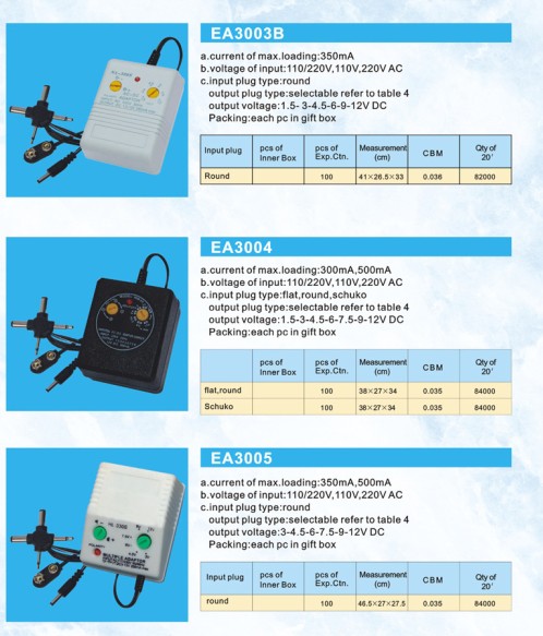 本公司创立于1988年,是一家专业从事生产各类电源变压器AC/DC、AC/AC的厂家。产品以出口为主,销售于东南亚、欧洲、南美洲、中东等国家。产品主要有多功能开关转换可调整流器、旋钮型多档变换整流器、手机充电器,变压器,多功能可调整流变压器,电源转换器,开关电源,电源适配器,电池充电器,卫星天线放大器电源,游戏机、CD机及功放机、收录机等专用电源变压器。本公司于1996年已获得欧洲CE安全认证书,是各商家理想的电源大王。